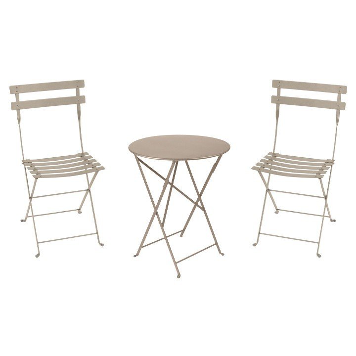 The set features a foldable bistro table and matching chairs, designed for space-saving storage and flexible use. Its compact structure makes it suitable for urban living, small patios, and seasonal outdoor dining programs.
