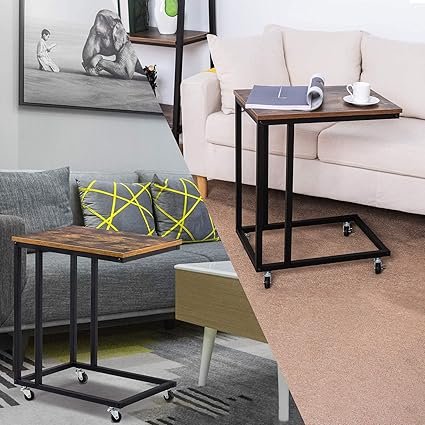 The design features a compact tabletop with a mobile frame that slides next to sofas and couches, supporting everyday activities such as coffee breaks, laptop use, and casual work. Lockable casters improve stability and positioning during use.