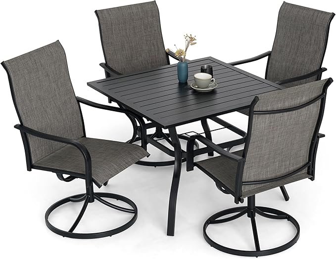 This swivel outdoor dining chair is a metal-frame seating project developed for backyard, deck, and garden dining environments.